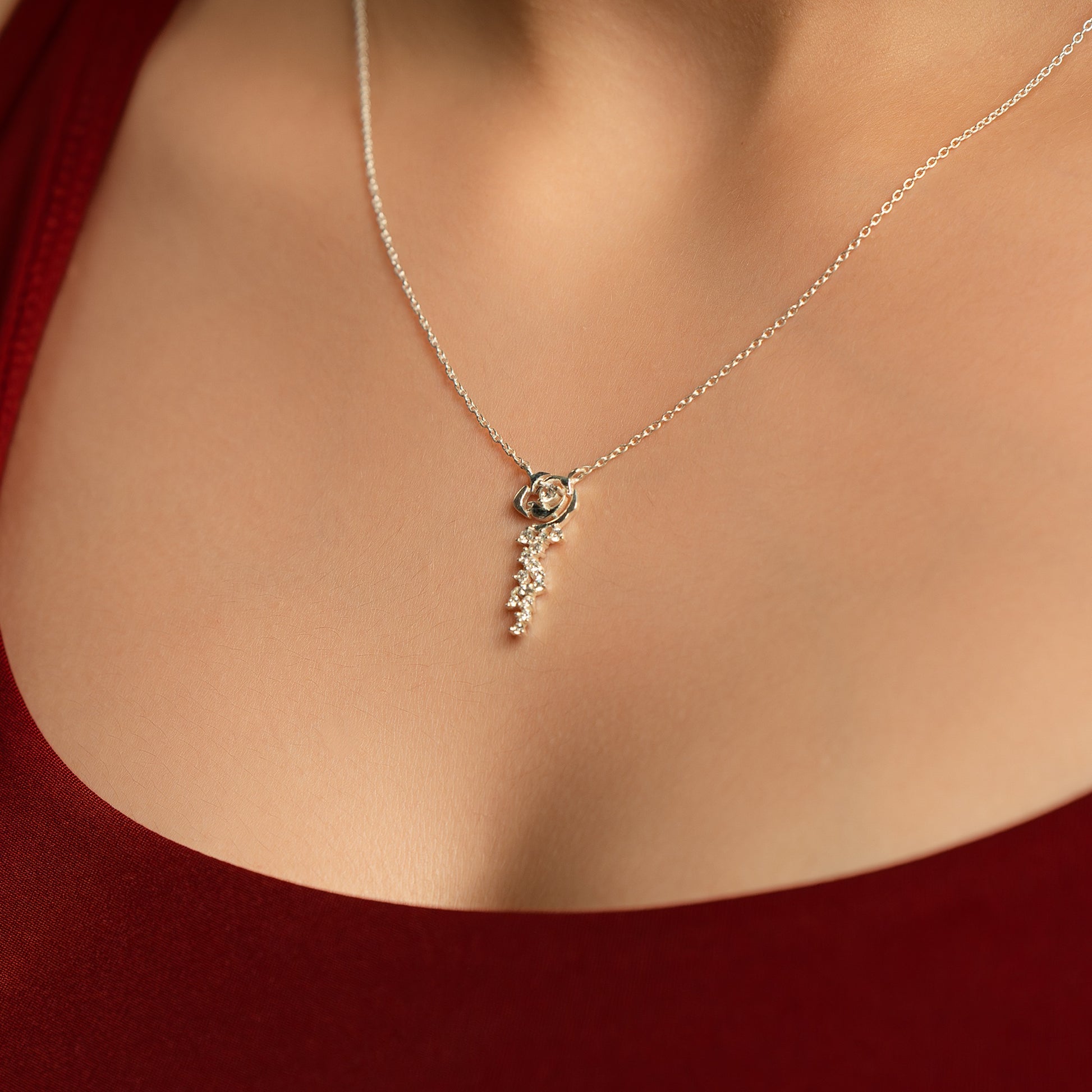 This Floral Chain Pendant is crafted from 92.5% pure sterling silver, featuring a high-polish finish that highlights its elegant design. Adorned with a white solitaire and sparkling zirconia stones, it offers a refined look perfect for ladies and girls seeking a sophisticated accessory. The delicate floral motif and quality craftsmanship ensure a timeless piece that complements both everyday wear and special occasions.