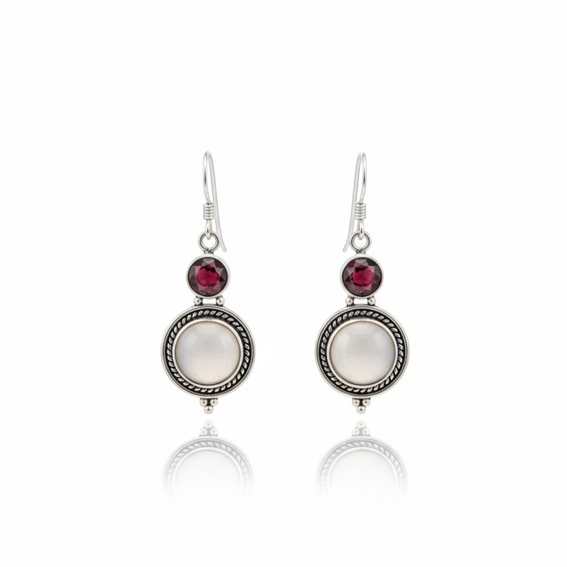 Crafted from 92.5% pure sterling silver, these Garnet and Rose Quartz earrings offer a striking blend of rich garnet hues and the gentle shimmer of rose quartz. Their high-polish finish enhances the stones' natural radiance, creating an elegant accessory designed for women and girls who appreciate refined beauty and timeless style.