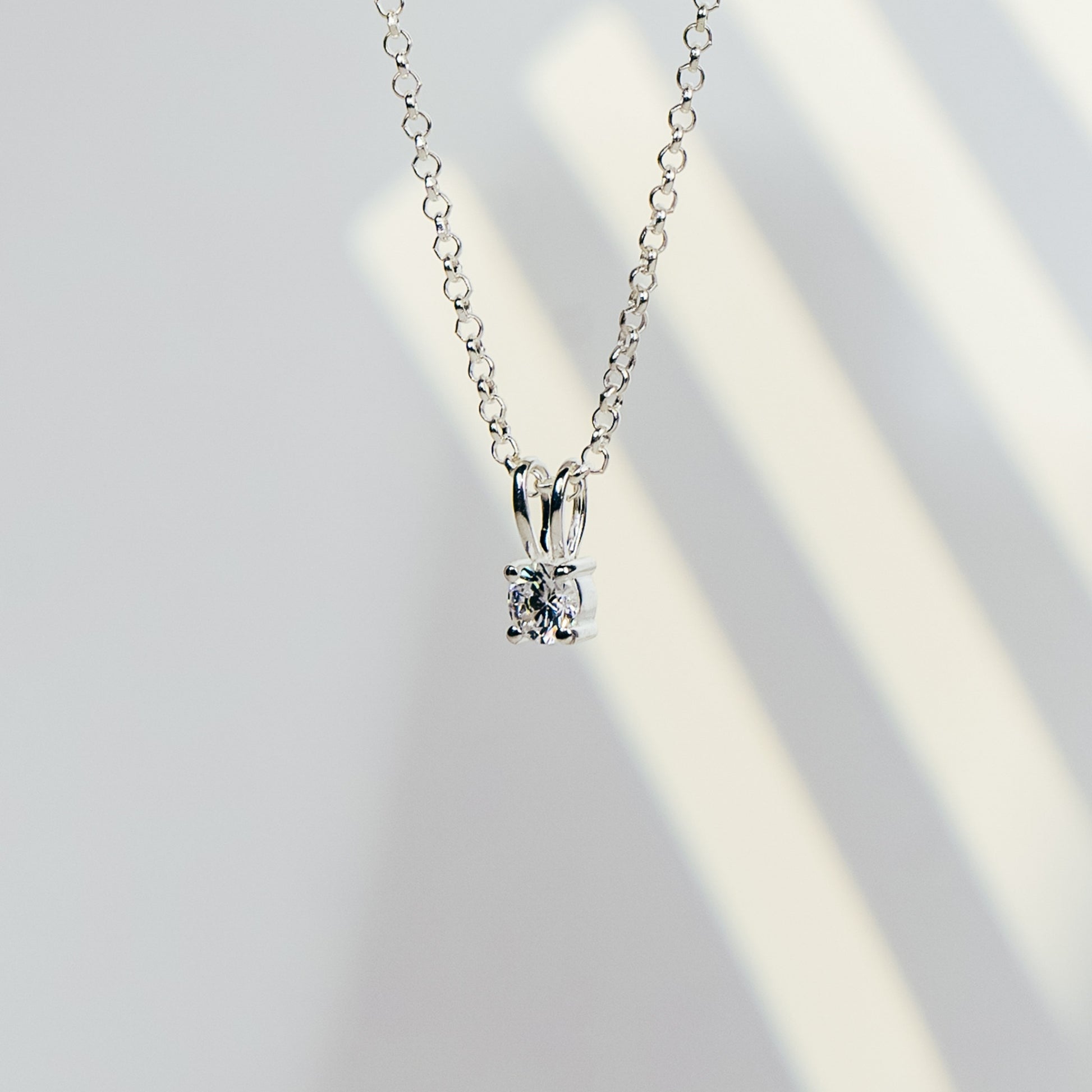 Crafted from 92.5% pure sterling silver, this Solitaire Chain Pendant showcases a brilliant white solitaire stone set with precision. Its high-polish finish enhances the pendant's elegance, making it a refined accessory for ladies and girls seeking timeless sophistication. Perfect for both everyday wear and special occasions, this pendant adds a subtle yet striking sparkle to any outfit.
